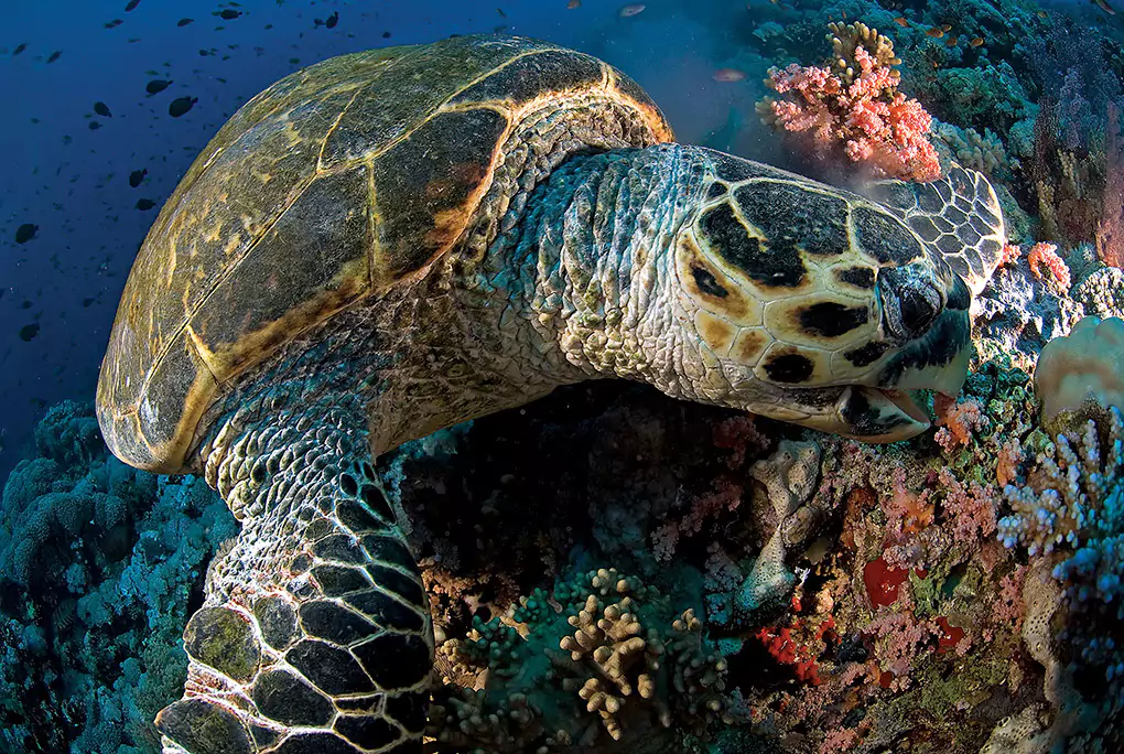 colourful galapagos sea turtle print for wall decoration